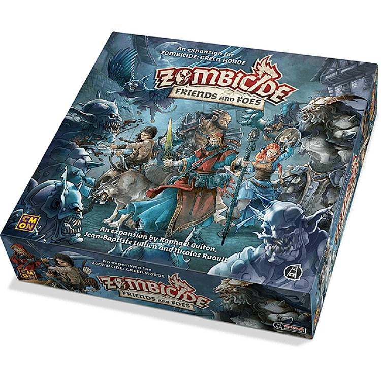 Zombicide: Friends and Foes is an expansion for Zombicide: Green Horde. On the “Friends” side, it includes new Survivors and weapons to equip them, but also faithful Familiars to aid them in their quests. On the “Foes” side, the expansion contains challenging Tainted Walkers and Abomination, from which you’ll want to keep your distance, 5 new treacherous tiles, and 10 new deadly Quests!