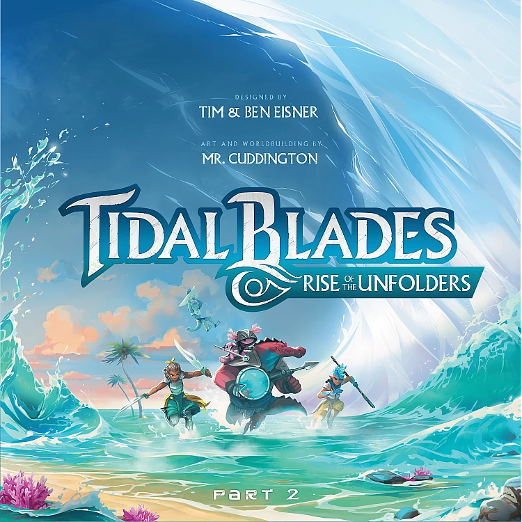 In Tidal Blades 2: Rise of the Unfolders, each player takes the role of a new Tidal Blade. In this cooperative, narratively rich, board game, players will work together through 18 scenarios. Each hero is equipped with a Nexus grid, allowing them to build up actions and create powerful combos. Each turn you will choose one card to play, add it to an open space in your Nexus grid, and then activate all spaces in either the row or column containing the played card.