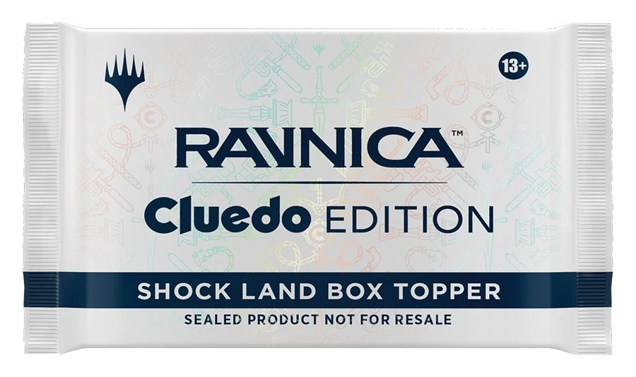 - CONTENTS—8 Ravnica: Cluedo Edition Boosters, 21 E vidence cards, 1 Foil Shock Land, 4 Hidden Info Screens, 1 Evidence Notepad, 1 Case File Envelope, 1 Card Storage Box